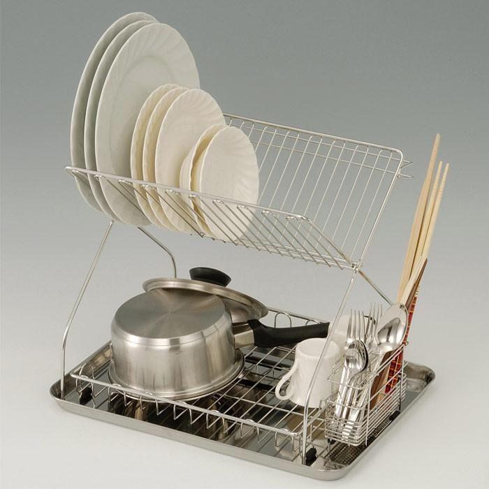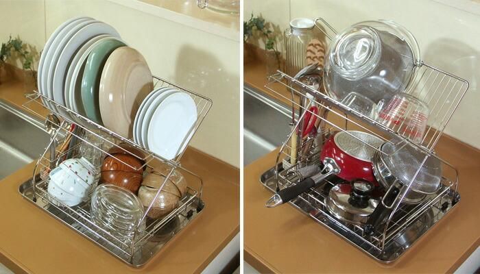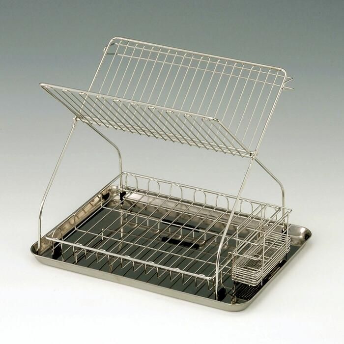 chinami たためる水切り 場所取らず 浜内千波デザイン 送料無料 当日出荷 分類で探す キッチングッズ キッチン小物 シンクまわり 水切りカゴ・トレー ブランドで探す 大木製作所 価格帯(税込) 1万円台の商品 キッチン用品 送料無料 ラッピング承ります 狭いスペースを有効に使え お料理に使用した道具も整理しながら一緒に乗せられる大容量の水切りラック トレーと専用の箸立てが付属 折り畳んで布巾やまな板を干せます ohki-001889 11,000円(税込) 0円 たためる水切り在庫11,000円(税込)在庫なし入荷待ち11,000円(税込)在庫なし SOLD OUT 製品について性能詳細お買い物ガイドクロッカについて 狭いスペースを有効に使え、お料理に使用した道具も整理しながら一緒に乗せられる大容量の水切りラック キッチンを広々綺麗に使える、トレーと専用の箸立てが付いた水切りセットです。通常の2段式は固定タイプが多く大きさもあり、使用しない時もスペースを取ってしまいましたが、この商品はたたむことによりキッチン周りを広々と清潔に使えます。収納時もスペースを取らず、コンパクトさを実現し、トレイやまな板の転倒防止を、さらに布巾も干せる無駄のない設計となっています。片づけ後、コンパクトにたたむとまな板も布巾も干すことができます。まな板や布巾専用のスタンドもいらず、まさに『場所取らず』、しかも台所はきれいに片付き、清潔で、料理の後の台所がスッキリ爽快です。 Chinamiブランドは、より快適なキッチンライフを目指して、料理研究家「浜内千波」が、使いやすく、楽しいキッチン用品を提案するキッチンブランドです。 上段の受け皿27cmの皿も外周をワイヤーがキャッチして安定感があります。 箸立て取り外せて、左右どちらでもセットできます。底は穴の開いたパンチング仕様で水はけが良い。 4本足の美しい曲面カーブ下段の収納スペースを大幅に確保。トレイ縁で固定され安定感があります。 本体と箸立ては18-8ステンレス錆びや汚れに強く耐久性があります。切断面は美しく処理されています。 サイズ(約)43.5×32×35cm 重量(約)2950g 材質本体・箸立て:18-8ステンレストレー:18-0ステンレス 備考日本製 製造元大木製作所 -おおきせいさくしょRERATED ITEMS関連商品