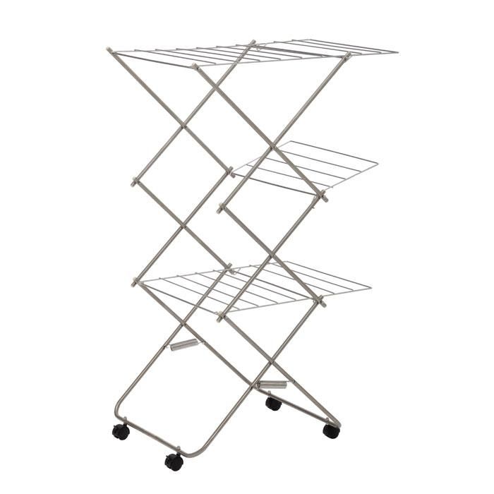 タワー型物干しは、上下に伸び縮する構造で、空間をうまく利用でき、限られたスペースでも大容量の洗濯物を干すことができます。