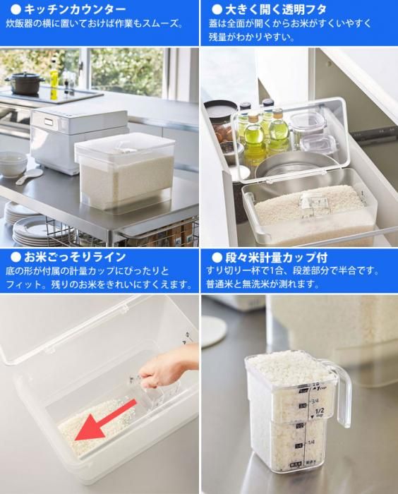 蓋は全面が開くからお米がすくいやすく、残量が分かりやすい透明蓋。