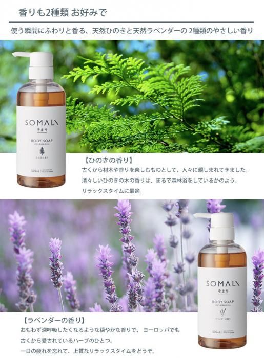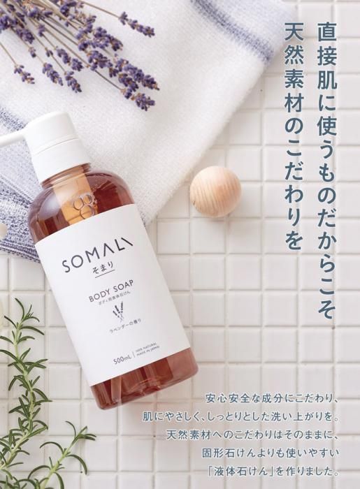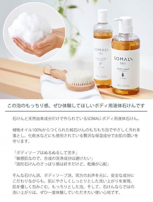 石けんと天然由来成分だけで作られているSOMALI ボディ用液体石けん。