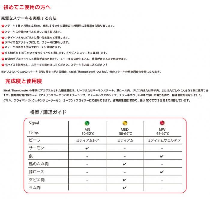 全てのステーキをお好みの焼き具合で調理できる究極のステーキ温度計です。