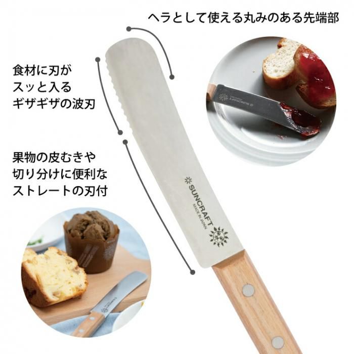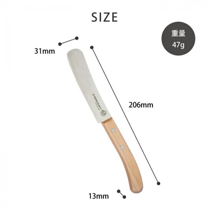 サンクラフト ケーキ&パテナイフ WW-206 メール便 送料無料 当日出荷 分類で探す キッチングッズ キッチン小物 製菓用品 その他製菓用品 ブランドで探す サンクラフト 価格帯(税込) 2,000円台の商品 キッチン 送料無料 ラッピング承ります カットだけでなく バターやクリームも塗れるナイフ 刃先のギザギザの波刃はやわらかいものが切りやすく ストレートの刃付部では 果物の皮むきや食材の切り分けができます suncraft-ww-206 2,420円(税込) 0円 会員価格: 1,815円(税込) 25%off 在庫入荷待ちホワイト合板2,420円(税込)2,420円(税込)在庫なし 数量 カートに入れる 製品について性能詳細お買い物ガイドクロッカについて カットだけでなく、バターやクリームも塗れるナイフ 刃先のギザギザの波刃は、食材に刃がスッと入り、やわらかいものも切りやすい。ストレートの刃付部では、果物の皮むきや食材の切り分けができます。先端が丸く、ヘラとして使えるブレードです。ジャムやディップソースをパンに付けたり、パンケーキやパウンドケーキの切り分けに。 材質ステンレス刃物鋼,積層強化木 サイズ約206×31×13mm 重量約47g 生産国日本 製造元SUNCRAFT -サンクラフトRERATED ITEMS関連商品モコミチハヤミ HENCKELS 三徳包丁 18cm