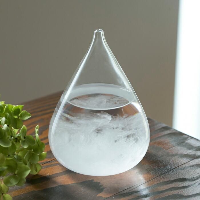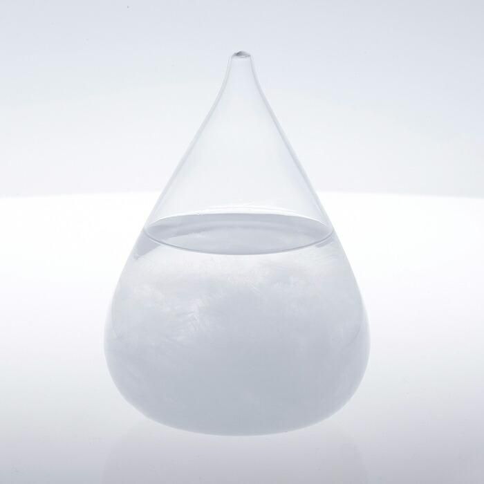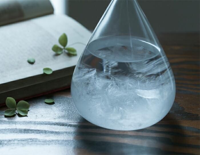 ストームグラスは19世紀に航海士等が使用していた天候予測器です。樟脳(クスノキのエキス)やエタノール等をガラス管に密封して作られており、気候の変化に反応して起きる結晶を観察する事で、役立てられていました。