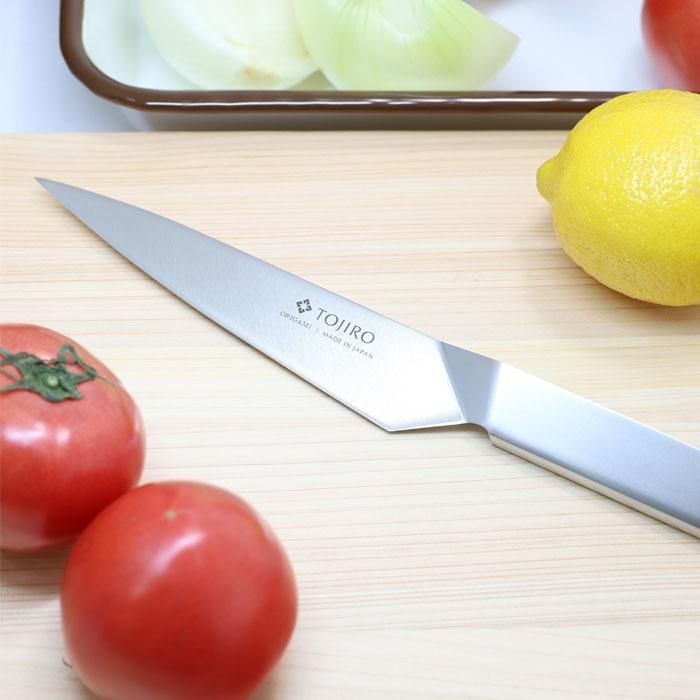 藤次郎 ORIGAMI ペティナイフ 130mm F-770 送料無料 当日出荷 分類で探す キッチングッズ 包丁 ペティナイフ ブランドで探す 藤次郎 価格帯(税込) 5,000円台の商品 キッチン用品 送料無料 ラッピング承ります ステンレス材を「折り紙」のように折り曲げて形づくったオールステンレスナイフ 溶接を行わないことで金属の性質劣化を回避しています tojiro-f770 5,500円(税込) 0円 SOLD OUT 製品について性能詳細お買い物ガイドクロッカについて ステンレス材を「折り紙」のように折り曲げて形づくったオールステンレスナイフ。溶接を行わないことで金属の性質劣化を回避しています。世界的に権威のある工業デザイン賞「iFデザイン賞」においてプロダクトデザイン賞を受賞。キッチンでスタイリッシュに映える斬新なデザインです。ハンドルの内部を洗浄するためのブラシが付属しています。 ペティナイフは牛刀包丁の小型タイプで、皮むき・飾り切・小細工などに適しています。小さな食材の場合は、三徳包丁の代わりに使用することもできる小型万能包丁です。 サイズ全長24.0cm、刃渡り13.0cm、約75g 材質刀身材:ハイカーボンステンレス鋼ハンドル材:ハイカーボンステンレス鋼 備考 日本製(燕三条) 刃付:両刃(右利き・左利き兼用) RERATED ITEMS関連商品そまり 洗濯用液体石けん 5L