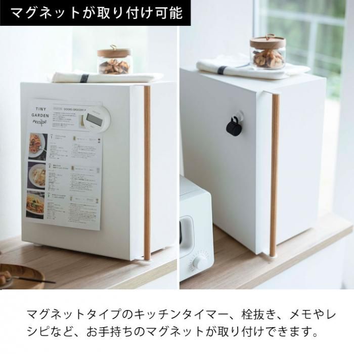 トスカ ブレッドケース スリム 5682 送料無料 当日出荷 分類で探す キッチングッズ キッチン収納 カゴ・バスケット・ボックス ブランドで探す 山崎実業 トスカ tosca 価格帯(税込) 1万円台の商品 キッチン用品 送料無料 ラッピング承ります 24Lの大容量でもスリムで省スペースなタワー型ブレッドケース パンやキッチン小物を隠して収納 パンも1斤まるごとしっかり収納 上下逆さに置くことで開閉の左右を変えられます tosca-5682 11,990円(税込) 0円 在庫入荷待ちホワイト11,990円(税込)在庫なし11,990円(税込)在庫なし SOLD OUT 製品について性能詳細お買い物ガイドクロッカについて パンやキッチン小物を隠してスリムに収納できる縦型のブレッドケース 24Lの大容量でもスリムで省スペースなタワー型ブレッドケース。ハンドルが木製でナチュラルな雰囲気。キッチンカウンターなどで、パンやジャム・お菓子等を隠しながら美しく収納できます。パンも1斤まるごとしっかり収納。 棚の上下で高さが違うので、収納するものに合わせて使い分けできます。棚板は少し奥まったところに付いているので、手前に背の高い物も置けて便利です。 スリムなタワー型で狭いカウンターにも置けます。置く場所や利き腕に合わせて、ケースの上下を逆にすることで扉の左開き、右開きを変えることができます。扉はマグネット式できちんと閉まります。持ち手もフラットでしっかりつかめ、スムーズに開閉できます。本体はスチール製でマグネットが付きます。 材質本体,扉:スチール(粉体塗装)、持ち手:天然木、マグネット、クッション,緩衝材:シリコーン サイズ約W22×D34.5×H41cm(クッション含む) 重量約5.6kg 耐荷重本体上部:約2、棚:約5 生産国中国 サイズ通常 スリムブランド 製造元tosca -トスカ 山崎実業RERATED ITEMS関連商品タワー キッチンスタンド 6777/6778タワー ディッシュスタンド 7137/7138タワー なべ蓋&フライパンラック 7463/7464タワー レンジフード調味料ラックタワー レンジフードなべ蓋ホルダー 2979/2980タワー ディッシュラック ワイド L 2965/2966タワー ディッシュラック ワイド S 3147/3148タワー マグネット 冷蔵庫サイドラック 2744/2745
