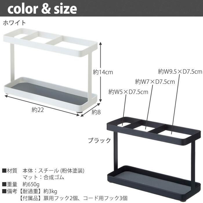 ドライヤー以外にもスプレーやブラシなどのスタイリング用品も収納可能です。