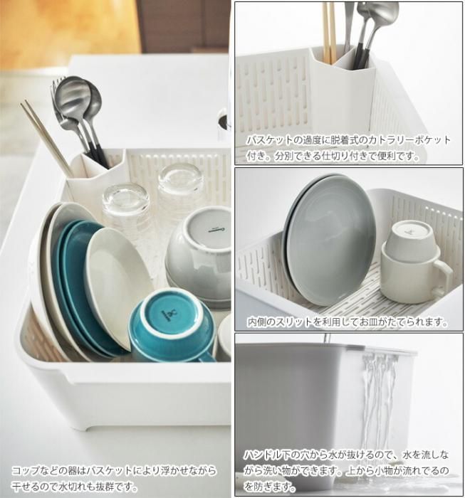 タワー 水切りセット 3589/3590 送料無料 当日出荷 分類で探す キッチングッズ キッチン小物 シンクまわり 水切りカゴ・トレー ブランドで探す 山崎実業 タワー tower 価格帯(税込) 3,000円台の商品 キッチン用品 送料無料 ラッピング承ります 大容量 8.5Lの洗い桶とバスケットの水切りセットです 排水方向を変えられ 直接シンクに水を流せる水はけ付き 止水栓付きでつけ置き洗いや野菜の水洗い桶としても使えます tower-3589-90 3,300円(税込) 0円 tower-3589-90ホワイト3,300円(税込)在庫なしブラック3,300円(税込)在庫なしホワイト(取り寄せ)3,300円(税込)在庫なしブラック(取り寄せ)3,300円(税込)在庫なし SOLD OUT 製品について性能詳細お買い物ガイドクロッカについて 商品説明 大容量の洗い桶とバスケットの水切りセットです。よく使うグラス・カップ・茶碗・カトラリー・調理道具などをたっぷり水切りできます。内側の縁を利用してお皿が立てられます。コップなどの器は浮かせながら干せるので水切れもばっちりです。本体にたまった水を直接シンクに流せる水はけ付き。好きな方向で排水が出来るので、縦横自由にレイアウトが可能。止水栓があるので、排水できない場所でも置くことができます。また、栓をして食器のつけおき洗いが出来るので節水にもなります。野菜の水洗い桶としても使えます。バスケットの角に脱着式のカトラリーポケットを設置できます。菜箸・カトラリー・調理道具などを分別できる仕切り付き。ハンドル下に穴が開いており、水を流しながらの洗い物もできます。 材質洗い桶・バスケット・カトラリーポケット・水はけ:ポリプロピレン、水止栓:シリコーン 耐熱温度90〜-40度 サイズ約 W37×D28×H14.5cm 容量約 8.5L 商品重量約970g 耐荷重約10kg ブランド 製造元tower -タワー 山崎実業RERATED ITEMS関連商品