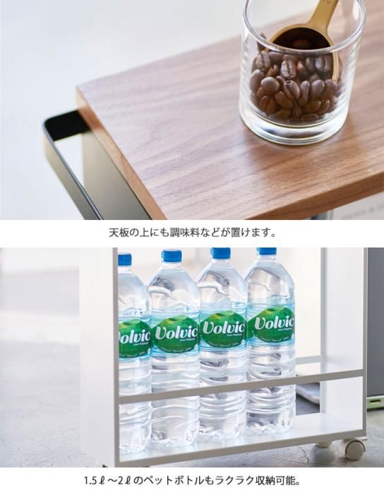 タワー ハンドル付きスリムワゴン 3627/3628 送料無料 当日出荷 分類で探す キッチングッズ キッチン収納 すき間収納 ブランドで探す 山崎実業 タワー tower 価格帯(税込) 1万円台の商品 キッチン用品 送料無料 幅約13cmの隙間で使えるハンドル付きのスリムワゴン キッチン小物 ジャムや雑貨など小さいものからペットボトルや瓶類などの大きいものまで収納可能です tower-3627-8 12,650円(税込) 0円 tower-3627-8ホワイト12,650円(税込)ブラック12,650円(税込)在庫なしホワイト(取り寄せ)12,650円(税込)ブラック(取り寄せ)12,650円(税込) 数量 カートに入れる 製品について性能詳細お買い物ガイドクロッカについて 商品説明 幅約13cmの隙間で使えるハンドル付きのスリムワゴン。キッチン小物、ジャムや雑貨など小さいものからペットボトルや瓶類などの大きいものまで収納可能。下段には1.5〜2Lのペットボトルやワインボトルなども収納できます。キャスターとハンドル付きだからラクラク移動できます。 材質本体:スチール(粉体塗装)天板:天然木化粧繊維板(ラッカー塗装)キャスター:ナイロン樹脂 サイズ約 W13×D47.5×H80.5cm 内寸天板サイズ:約W13×D45cm上段:約W12.5×D44.5×H14.5cm中段:約W12.5×D44.5×H23.5cm下段:約W12.5×D44.5×H32.5cm 商品重量約4kg 耐荷重天板:約1kg上段:約2kg中段:約3kg下段:約6kg 生産国中国 備考付属品:スパナ(キャスター取り付け用) ブランド 製造元tower -タワー 山崎実業RERATED ITEMS関連商品タワー スリムキッチンワゴン 7151/7152キッチンワゴン 3段 ウッド キャスター付き LFS-082キッチンワゴン スチール 3段 キャスター付き LFS-084キッチンワゴン スチール 4段 キャスター付きワゴン LFS-085