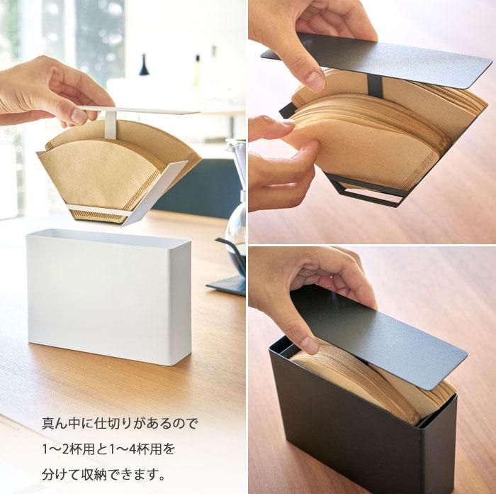 タワー コーヒーペーパーフィルターケース 3817/3818 当日出荷 分類で探す キッチングッズ 食器・カトラリー コーヒー・お茶用品 ブランドで探す 山崎実業 タワー tower 価格帯(税込) 2,000円台の商品 キッチン 送料無料 ラッピング承ります ほこりやゴミをしっかりガードできるコーヒーペーパーフィルターケース 扇形・円すい型の2種類のフィルターが収納できます 真ん中に仕切りがあるのでサイズを分けて収納できますtower-3817-8 2,200円(税込) tower-3817-8ホワイト2,200円(税込)在庫なしブラック2,200円(税込)在庫なしホワイト(取り寄せ)2,200円(税込)ブラック(取り寄せ)2,200円(税込) 数量 カートに入れる 製品について性能詳細お買い物ガイドクロッカについて商品説明ほこりやゴミをしっかりガードできるコーヒーペーパーフィルターケース。扇形・円すい型の2種類のフィルターが収納できます。使用するときはフタを引き上げるだけ。真ん中に仕切りがあるのでサイズを分けて収納できます。 材質スチール(粉体塗装) サイズ約 W18.5×D5.7×H13.7cm 対応サイズ扇 形:1〜2・2〜4杯用ペーパーフィルター 約100枚(片方約50枚)円すい形:1〜2・1〜4杯用ペーパーフィルター 約60枚(片方約30枚) 商品重量約660g ブランド 製造元tower -タワー 山崎実業RERATED ITEMS関連商品トスカ レシピスタンド 2737modes モデス カトラリーケース ホワイト 山崎実業タワー お玉&鍋ふたスタンド 2248/2249タワー 伸縮&スライド カトラリートレー 3382/3383