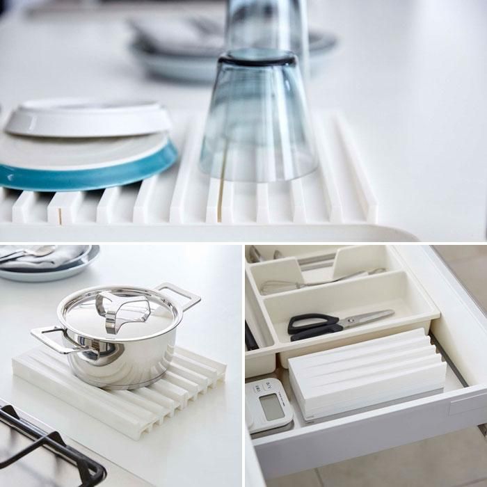 タワー 折り畳み水切りトレー ホワイト 3835/3836 送料無料 当日出荷 分類で探す キッチングッズ キッチン小物 シンクまわり 水切りカゴ・トレー ブランドで探す 山崎実業 タワー tower 価格帯(税込) 3,000円台の商品 キッチン用品 送料無料 ラッピング承ります 切った水をそのままシンクに流せる水切りトレー 半分に折り畳めば鍋敷き 4つ折りにしてコンパクトに フックに引っ掛けて収納可能 tower-3835-6 3,300円(税込) 0円 折り畳み水切りトレーホワイト3,300円(税込)ブラック3,300円(税込)在庫なしホワイト(取り寄せ)3,300円(税込)ブラック(取り寄せ)3,300円(税込) 数量 カートに入れる 製品について性能詳細お買い物ガイドクロッカについて 平らな面で食器を支えながら、切った水をそのままシンクに流せる水切りトレー。シリコーンだから置いてお皿が滑りません。マグボトルの水切りや野菜の一時置きにも便利です。 半分に折り畳めば鍋敷き、4つ折りにすればコンパクトに。フックに引っ掛けて収納できます。 商品説明 平らな面で食器を支えながら、切った水をそのままシンクに流せる水切りトレー。半分に折り畳めば鍋敷き、4つ折りにすればコンパクトに収納できます。フックに引っ掛けて収納可能。 サイズ約W40.5×D25×H1.3cm 重量約550g 材質シリコーン 備考食器洗い乾燥機使用可能【耐熱温度/耐冷温度】250℃/-40℃ ブランド 製造元tower -タワー 山崎実業RERATED ITEMS関連商品