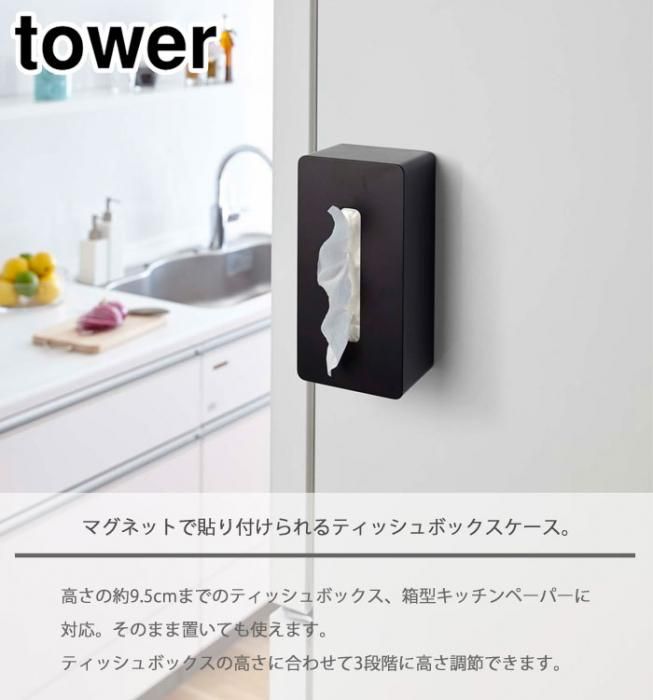 タワー マグネットティッシュケース S 送料無料 当日出荷 分類で探す インテリアグッズ 収納 インテリア雑貨 ティッシュケース ブランドで探す 山崎実業 タワー tower 価格帯(税込) 2,000円台の商品 リビング 送料無料 ラッピング承ります 保湿タイプの高さのあるティッシュボックスも収納できるマグネットティッシュケース 3段階の高さ調節可能 マグネットで貼り付けても置き型としても使えますtower-4001-2 2,420円(税込)0円 tower-4001-2ホワイト2,420円(税込)ブラック2,420円(税込)在庫なしホワイト(取り寄せ)2,420円(税込)ブラック(取り寄せ)2,420円(税込)在庫なし 数量 カートに入れる 製品について性能詳細お買い物ガイドクロッカについて商品説明マグネットで貼り付けるだけの簡単取り付け。ティッシュペーパーだけでなくキッチンペーパーにも対応しています。そのまま置いても使えます。保湿タイプの高さのあるティッシュボックスも収納できます。ティッシュボックスの高さに合わせて仕切り板を使って約4.7/5.2/6.4cmの3段階に高さ調整できます。 材質本体・台座・仕切り板:ABS樹脂、マグネット付属品:緩衝材×4 サイズ約 W26×D13×H10cm 調整可能サイズ高さ 約4.7cm、5.2cm、6.4cmの3段階 対応サイズ高さ約9.5cmまでのティッシュボックス 商品重量約425g 耐荷重約500g ブランド 製造元tower -タワー 山崎実業RERATED ITEMS関連商品タワー 蚊取りポット KATORIPOT 陶器 7916/7917