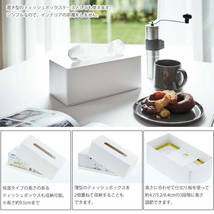 タワー マグネットティッシュケース 4001/4002 送料無料 当日出荷 分類で探す インテリアグッズ 収納 インテリア雑貨 ティッシュケース ブランドで探す 山崎実業 タワー tower 価格帯(税込) 2,000円台の商品 リビング 送料無料 ラッピング承ります 保湿タイプの高さのあるティッシュボックスも収納できるマグネットティッシュケース 3段階の高さ調節可能 マグネットで貼り付けても置き型としても使えます tower-4001-2 2,420円(税込) 0円 tower-4001-2ホワイト2,420円(税込)ブラック2,420円(税込)在庫なしホワイト(取り寄せ)2,420円(税込)ブラック(取り寄せ)2,420円(税込)在庫なし 数量 カートに入れる 製品について性能詳細お買い物ガイドクロッカについて 商品説明 マグネットで貼り付けるだけの簡単取り付け。ティッシュペーパーだけでなくキッチンペーパーにも対応しています。そのまま置いても使えます。保湿タイプの高さのあるティッシュボックスも収納できます。ティッシュボックスの高さに合わせて仕切り板を使って約4.7/5.2/6.4cmの3段階に高さ調整できます。 材質本体・台座・仕切り板:ABS樹脂、マグネット付属品:緩衝材×4 サイズ約 W26×D13×H10cm 調整可能サイズ高さ 約4.7cm、5.2cm、6.4cmの3段階 対応サイズ高さ約9.5cmまでのティッシュボックス 商品重量約425g 耐荷重約500g タイプコンパクト ボックスティッシュ対応ブランド 製造元tower -タワー 山崎実業RERATED ITEMS関連商品タワー 蚊取りポット KATORIPOT 陶器 7916/7917