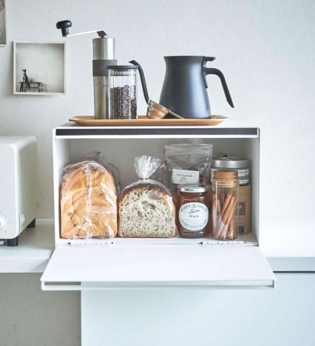 タワー ブレッドケース 4352/4353 送料無料 当日出荷 分類で探す キッチングッズ キッチン収納 カゴ・バスケット・ボックス ブランドで探す 山崎実業 タワー tower 価格帯(税込) 9,000円台の商品 キッチン用品 送料無料 ラッピング承ります パンや調味料 紅茶などをすっきりまとめて収納できる27Lの大容量ブレッドケース 家電ラックとして上にはトースターや電気ケトルなども置けますtower-4352-3 9,900円(税込)0円 在庫入荷待ちホワイト9,900円(税込)9,900円(税込)ブラック9,900円(税込)在庫なし9,900円(税込) 数量 カートに入れる 製品について性能詳細お買い物ガイドクロッカについてパンや調味料、紅茶などをすっきりとまとめて収納できる 27Lの大容量ブレッドケース キッチンカウンターなどで雑然としがちなパンやお菓子、調味料などを隠しながら美しく収納できる収納ケースです。 耐荷重10kg、上にトースターや電気ケトルなども置けます スチール製で丈夫なので、トースターなどの重いキッチン家電を置いても安定して使うことができます。また、マグネットがつくのでキッチンタイマーやフックなどをつけられます。 材質本体:スチール(粉体塗装)、マグネット緩衝材:シリコーン サイズ約 W40×D34.5×H24cm 耐荷重約10kg 商品重量約5.1kg 備考中国生産 ブランド 製造元tower -タワー 山崎実業RERATED ITEMS関連商品