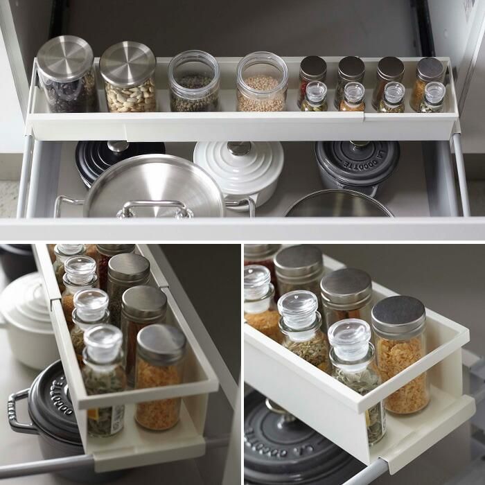 伸縮できるから引き出しの幅に合わせてピッタリフィットする伸縮ラック。