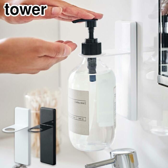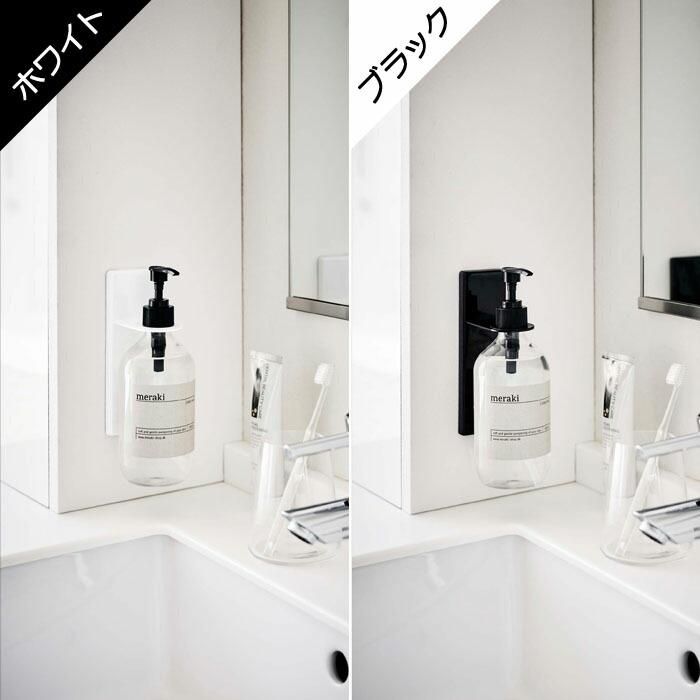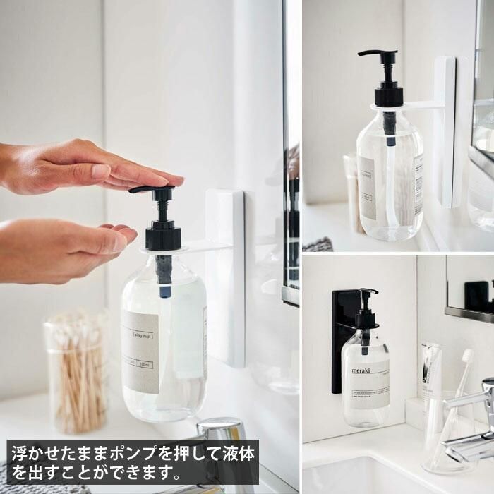 宙に浮かせるからボトルの底がぬめらず衛生的。そのままポンプを押して液体を出すことができます。