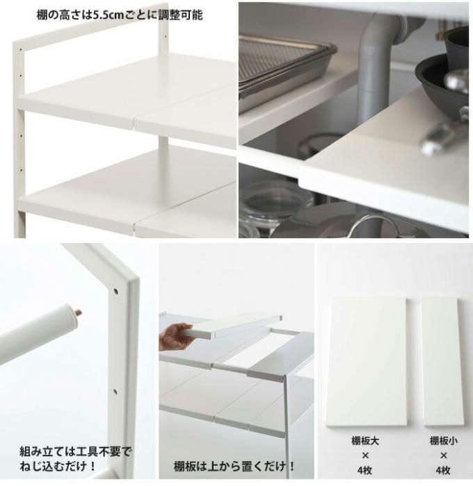 タワー 伸縮シンク下ラック 2段 D40 4950/4951 送料無料 当日出荷 分類で探す キッチングッズ キッチン収納 すき間収納 ブランドで探す 山崎実業 タワー tower 価格帯(税込) 8,000円台の商品 キッチン用品 送料無料 ラッピング承ります 設置場所に合わせて幅を伸縮できるスチール製伸縮棚 奥行40cmタイプ シンク下など限られたスペースにぴったりのラックです 組み立ては工具不要でねじ込むだけ 棚板も調整可能 tower-4950-1 8,800円(税込) 0円 在庫入荷待ちホワイト8,800円(税込)在庫なし8,800円(税込)ブラック8,800円(税込)在庫なし8,800円(税込) 数量 カートに入れる 製品について性能詳細お買い物ガイドクロッカについて 設置場所の幅に合わせて伸縮できる丈夫なスチール製伸縮棚 キッチンのシンク下や洗面台下など、設置場所の幅に合わせて伸縮できる丈夫なスチール製伸縮棚。組み立ては工具不要でねじ込むだけ。棚板は自由に取り外しができ、設置は上から置くだけ。排水パイプを避けて設置できるからスペースを無駄なく有効活用できます。収納するものの高さに合わせて、棚の高さは5.5cmごとに調整できます。 材質本体:スチール(粉体塗装) サイズ(約)W50〜85×D40×H35cm 内寸サイズ(約)W48〜83×D40×H3.5cm(高さは1ピッチ約5.5cmずつ上がります) 耐荷重各段 (約)5kg 商品重量(約)5,750g 備考中国生産 ブランド 製造元tower -タワー 山崎実業RERATED ITEMS関連商品タワー キッチンスタンド 6777/6778タワー ディッシュスタンド 7137/7138タワー なべ蓋&フライパンラック 7463/7464タワー レンジフード調味料ラックタワー レンジフードなべ蓋ホルダー 2979/2980タワー ディッシュラック ワイド L 2965/2966タワー ディッシュラック ワイド S 3147/3148タワー マグネット 冷蔵庫サイドラック 2744/2745
