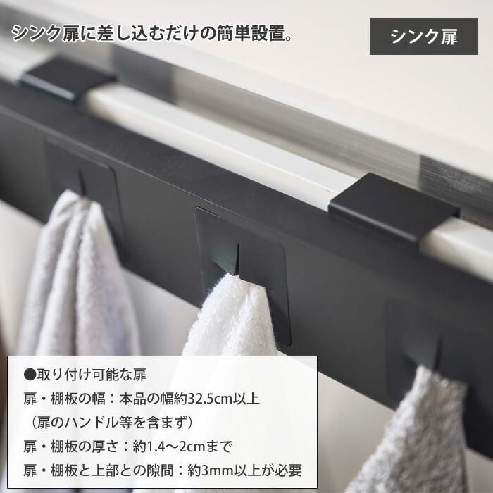 タワー 分別タオルホルダー 4連 5197/5198 送料無料 分類で探す キッチングッズ キッチン収納 タオル・布巾ハンガー ブランドで探す 山崎実業 タワー tower 価格帯(税込) 1,000円台の商品 キッチン用品 送料無料 ラッピング承ります 家族でタオルの使い分けができるホルダー4連 タオルや布巾を指で差し込むだけで掛けられます シンク扉に差し込んで設置 木ねじで壁面に取り付けのどちらにも対応していますtower-5197-8 1,980円(税込)0円 在庫入荷待ちホワイト1,980円(税込)在庫なし1,980円(税込)在庫なし SOLD OUT 製品について性能詳細お買い物ガイドクロッカについて家族でタオルの使い分けができるホルダー4連!タオルや布巾を指で差し込むだけ。 シンク扉に差し込むだけで設置できます。タオルや布巾を指で差し込み、最大4枚まで付けることができます。付属の木ネジを使って壁面にも取り付け可能です。 サイズ扉用フック使用時:(約)W32.5×D4.5×H5.5cm壁面使用時:(約)W32.5×D2×H5.5cm 内寸サイズホルダー部各間隔:(約)9cm 材質本体・扉用フック:ABS樹脂 耐荷重(約)1kg 商品重量(約)160g 付属品扉用フック×2、木ネジ×2、緩衝材×6 対応サイズ取り付け可能な壁面板壁・柱・プリント合板(裏側に水平にサンがある場所)取り付け可能な扉扉・棚板の幅:本品の幅約32.5cm以上(扉のハンドル等を含まず)、扉・棚板の厚さ:約1.4〜2cmまで、扉・棚板と上部との隙間:約3mm以上が必要 備考中国生産 ブランド 製造元tower -タワー 山崎実業RERATED ITEMS関連商品タワー キッチンタオルハンガー ホワイトタワー キッチンタオルハンガー ブラックトスカ 折り畳み布巾ハンガー 2962トスカ マグネットキッチンタオルハンガー 7823トスカ キッチンタオルハンガー 7818tosca 布巾ハンガー ホワイト 7822 山崎実業