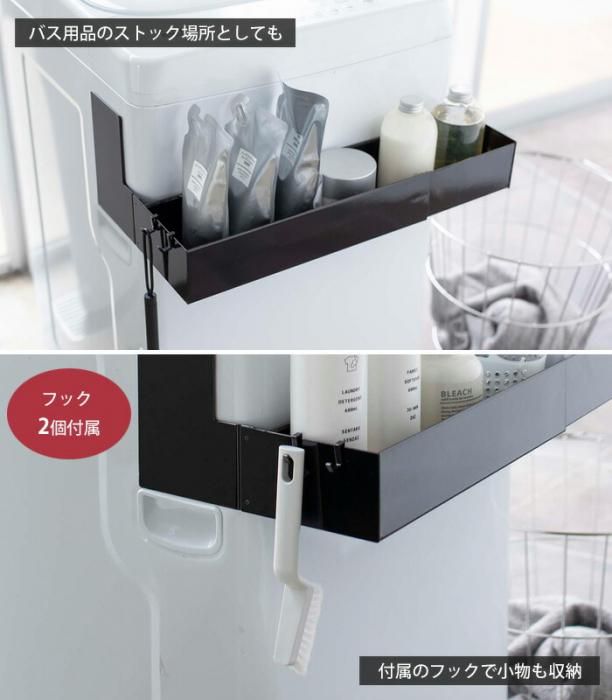 タワー マグネット伸縮洗濯機ラック 5272/5273 送料無料 当日出荷 分類で探す インテリアグッズ 風呂・バス用品 風呂・洗面所収納 ブランドで探す 山崎実業 タワー tower 特集ページ 風呂・洗面所特集 洗面所 価格帯(税込) 4,000円台の商品 洗面所用品 送料無料 ラッピング承ります マグネットで洗濯機の側面から挟み込むだけの簡単取り付け 洗濯機のサイズに合わせて伸縮できる 洗剤ボトルや洗濯ネットなどを洗濯機の手前に収納できるから洗濯作業がスムーズtower-5272-3 4,950円(税込)0円 在庫入荷待ちホワイト4,950円(税込)在庫なし4,950円(税込)在庫なしブラック4,950円(税込)在庫なし4,950円(税込)在庫なし SOLD OUT 製品について性能詳細お買い物ガイドクロッカについて マグネットで洗濯機の側面から挟み込むだけの簡単取り付け 伸縮できて洗濯機のサイズに合わせて調整できます。ラックの幅は約38〜65.5cmに伸縮します。2個同時に使用すれば収納力もUP。 付属のフックでブラシなどの小物も収納可能。洗剤ボトルや洗濯ネットなどを洗濯機の手前に収納できるから洗濯作業がスムーズ。シャンプー・コンディショナーなどのバス用品のストックの収納としても便利です。 材質本体:スチール(粉体塗装)マグネット、滑り止め:シリコーン サイズ(約)38〜65.5×30×18cm 内寸サイズ(約)37.5〜65×11×7.5cm 取り付け可能な洗濯機マグネットが付く、左右の側面が平らで垂直平行幅約65cm以内、側面は正面中央から約8cm空けたところから平らな面が約10cm以上、側面の取っ手上下の平らな面が約18cm以上空いていること(※ドラム式洗濯機には取り付けられません。) 商品重量(約)2.4kg 耐荷重本体:(約)3kg、フック:1つあたり(約)250g 付属品マグネット、フック×2 備考中国生産組立式(六角レンチ付属) ブランド 製造元tower -タワー 山崎実業RERATED ITEMS関連商品タワー ランドリーワゴン 3349/3350トスカ ランドリーワゴン 2段 3299オークス ソライエ 室内物干し 3サイズ オーク木目タワー マグネット洗濯ハンガー収納ラック 3623/3624タワー マグネット洗濯ハンガー収納ラック SSタワー くるくるアイロンマット 3357/3358タワー アイロン収納マット 3443/3444