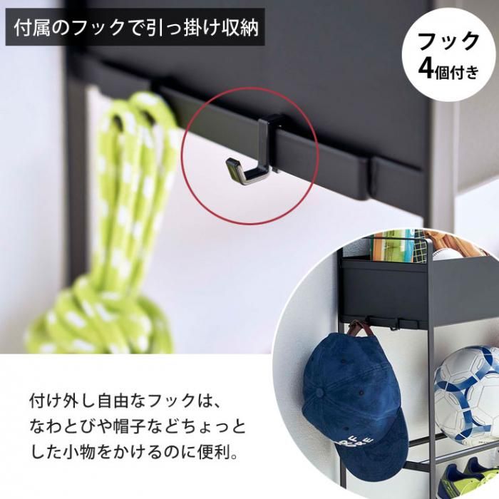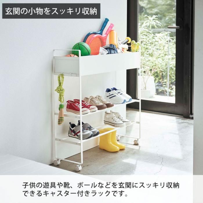 お子様の遊具や靴、ボールなどを玄関にスッキリ収納できるキャスター付き収納ラックです。