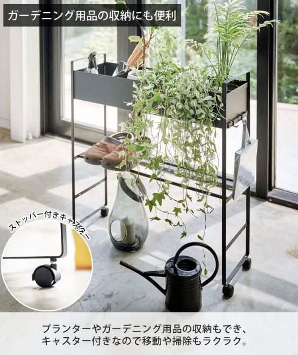 プランターやガーデニング用品の収納にも便利。キャスター付きで移動や掃除も楽々。