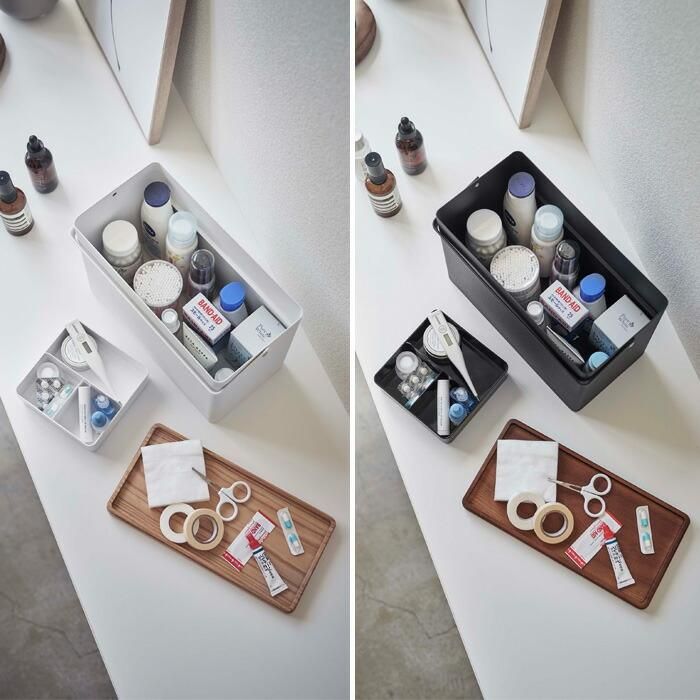 タワー 救急箱 5288/5289 送料無料 当日出荷 分類で探す インテリアグッズ 収納 かご・バスケット ブランドで探す 山崎実業 タワー tower 価格帯(税込) 6,000円台の商品 リビング用品 送料無料 ラッピング承ります 毎日の暮らしにちょうどいい モダンでスタイリッシュな大容量のハンドル付き救急箱 出しておいても生活感のでないデザイン 高さがあるので消毒液のボトル類も収納できますtower-5288-9 6,820円(税込)0円 在庫入荷待ちホワイト6,820円(税込)在庫なし6,820円(税込)ブラック6,820円(税込)在庫なし6,820円(税込) 数量 カートに入れる 製品について性能詳細お買い物ガイドクロッカについて 毎日の暮らしにちょうどいい。モダンでスタイリッシュな大容量の救急箱 上段のトレーはスライド式。縦・横どちらの向きでも収納できます。持ち運びに便利な取っ手付き。トレーは取り出すことができるので、卓上で道具類を散らかさずに一時置きできます。出しておいても生活感のでないデザイン。高さがあるので消毒液のボトル類も収納できます。木蓋を裏返せば、一時置きのトレーとしてご使用いただけます。 材質容器:スチール(粉体塗装)、蓋:天然木(ラッカー塗装)、トレー:ABS樹脂 サイズ約W27×14×19.5cm(取っ手含む) 内寸サイズ容器:(上段)(約)W25.5×D12.5×H5.5cm、(下段)(約)W25.5×D12.5×H13cm 木蓋トレー部:(約)W24.5×D11.5×H0.8cmトレー:(大)(約)W12.4×D5.8×H3.5cm、(中)(約)W6.2×D6.2×H3.5cm(小)、(約)W6×D6.2×H3.5cm 商品重量約1.9kg 備考中国生産 ブランド 製造元tower -タワー 山崎実業RERATED ITEMS関連商品トスカ タブレット&リモコンラック 2344トスカ スタンドミラー&トレイ 2314トスカ アクセサリーハンガー 2310トスカ アクセサリースタンドトスカ サングラス&アクセサリーハンガー 2514リン フローリングワイパースタンド 3178/3179リン ペン&リモコンラック 2731/2732