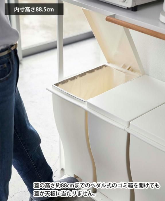 蓋の高さ約88までのペダル式のゴミ箱を開けても蓋が天板に当たりません。