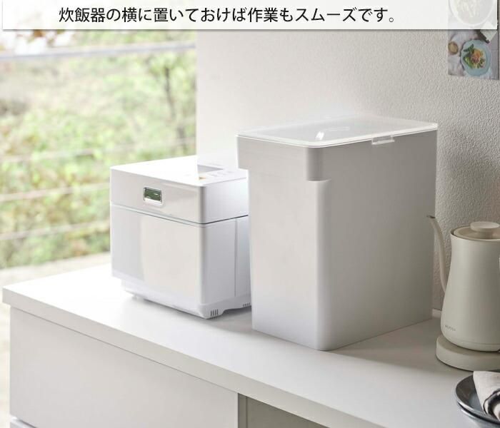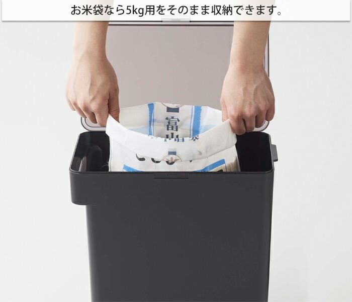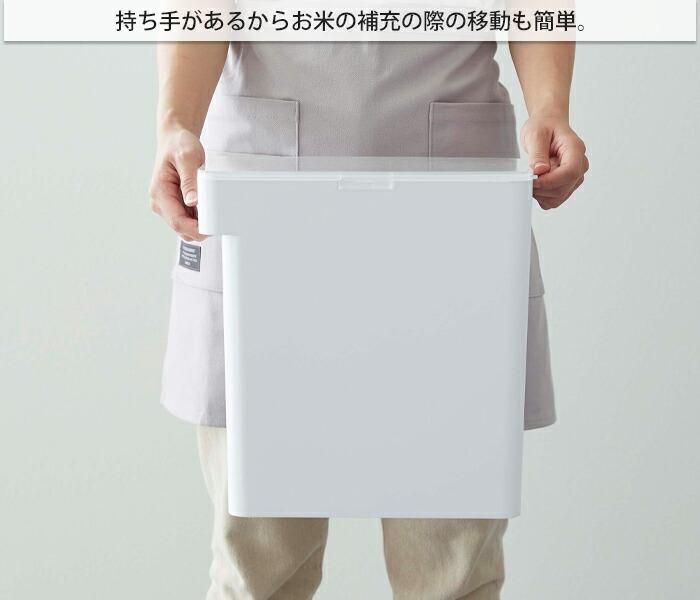 持ち手があるからお米の補充の際の移動も簡単。炊飯器の横に置いておけば作業もスムーズ。お米袋なら5用が袋のまま収納することができます。