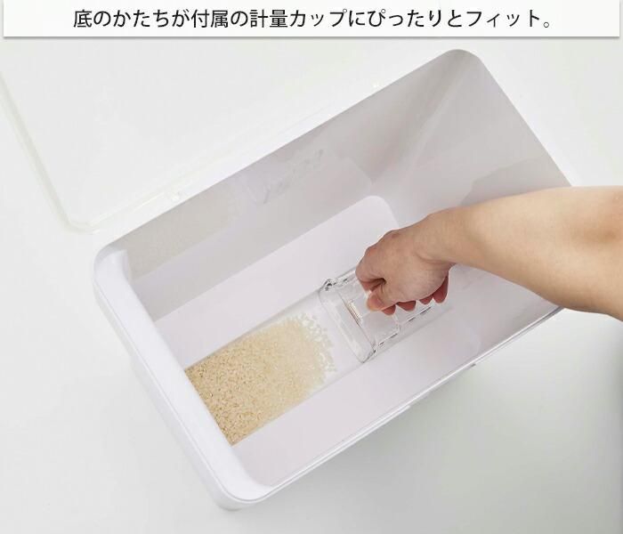 底の形が付属の計量カップにピッタリとフィットするから、残りのお米をきれいにすくい取ってくれます。