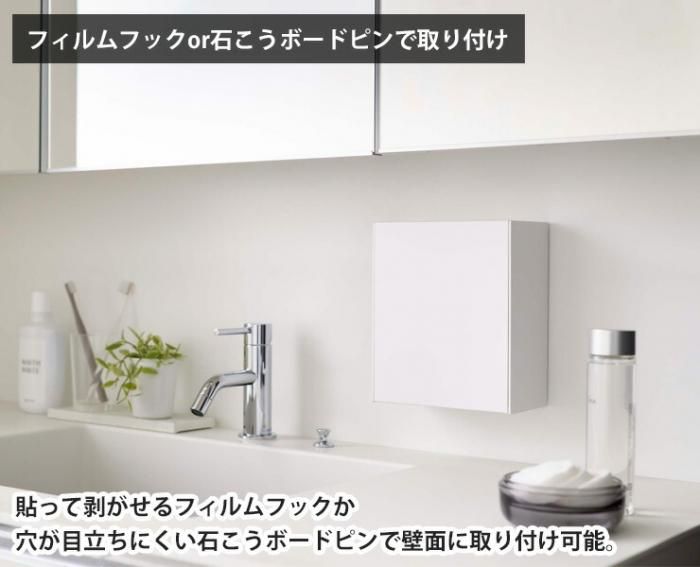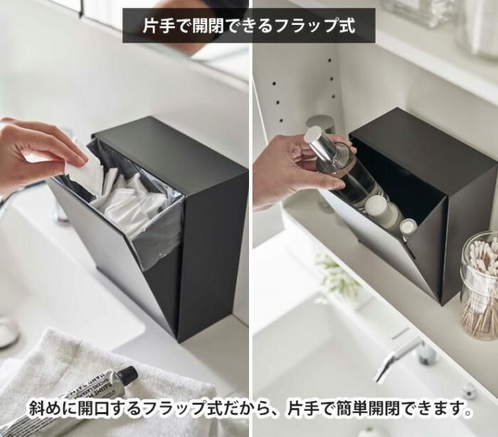 キッチンや洗面所の壁面や洗面台、棚の中などお好みの位置に設置できて、洗面所のゴミ入れや小物収納ケースとして便利です。