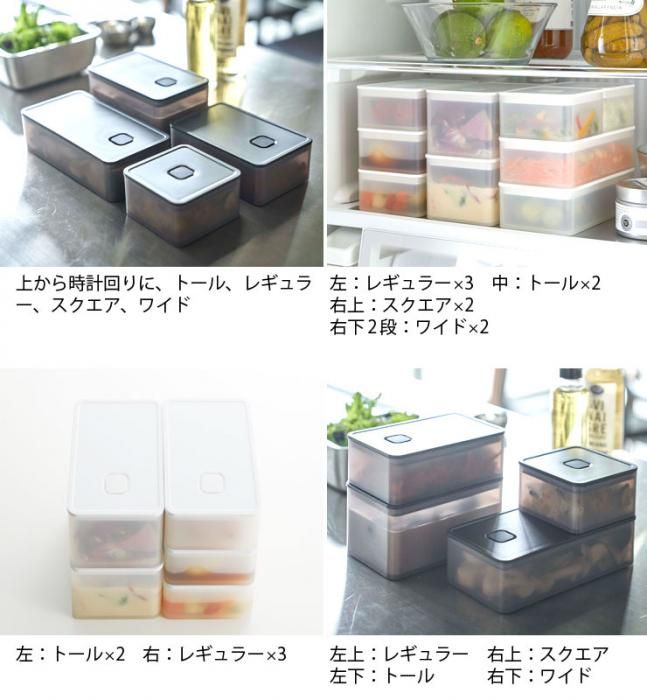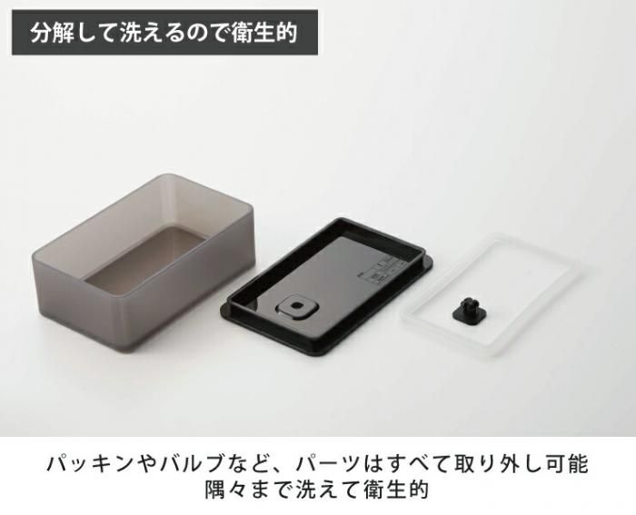 タワー バルブ付き密閉保存容器 5518/5519 当日出荷 分類で探す キッチングッズ キッチン小物 保存容器 キャニスター ブランドで探す 山崎実業 タワー tower 価格帯(税込) 1,000円台の商品 キッチン用品 送料無料 ラッピング承ります ワンプッシュで密閉 汁もれしにくく ランチボックスとしても使える保存容器 パッキン付きで持ち運びも安心 食洗機対応 電子レンジでの温め直しもできます tower-5518-9 1,100円(税込) 在庫入荷待ちホワイト1,100円(税込)在庫なし1,100円(税込)在庫なしブラック1,100円(税込)在庫なし1,100円(税込)在庫なし SOLD OUT 製品について性能詳細お買い物ガイドクロッカについて ワンプッシュで密閉、汁もれしにくく、ランチボックスとしても使える保存容器 ランチボックスとしても使える食材の保存容器。バルブをワンプッシュで簡単密閉。パッキン付きで汁もれしにくいので持ち運びも安心です。電子レンジでの温め直しにも対応しています。スタッキングできるので、冷蔵庫の中できれいに積み重ねて収納できます。パーツはすべて分解して洗えます。食器洗い乾燥機でもお手入れできます。 バルブ、パッキンのご使用方法 ※蓋をしたまま電子レンジでご使用する際は、必ずバルブを開いてください。※蓋を開ける際は、バルブをあげた状態にして、蓋を持ち上げて外してください。※蓋を閉める際は、先に蓋を容器に押し込んだ後、バルブを押し下げて密閉してください。■パッキンには向きがあります。お手入れ後など、取り付けなおす際は、向きにご注意ください。 材質容器,蓋:ポリプロピレン、パッキン,バルブ:シリコーン サイズ約W14.7×D9.2×H5cm 内寸サイズ約W13.5×D8×H3.5cm 容量約400ml(蓋をした状態) 重量約140g 生産国中国 備考電子レンジ使用可●食洗機使用可 サイズスクエア レギュラー トール ワイドブランド 製造元tower -タワー 山崎実業RERATED ITEMS関連商品ジェルクールスクエア S 220ml 保冷剤一体型ランチボックス