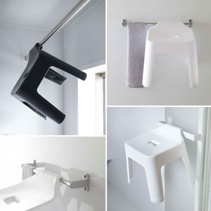 浴室のタオルバーなどに掛けて乾かせるフック付き風呂イス。