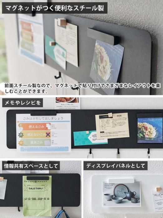タワー フック付きウォールスチールパネル ワイド 5530/5531 送料無料 当日出荷 分類で探す キッチングッズ キッチン収納 その他キッチン収納 ブランドで探す 山崎実業 タワー tower 価格帯(税込) 3,000円台の商品 リビング 送料無料 ラッピング承ります 壁の穴が目立たない石こうボードピンでリビングやキッチンに壁掛けできる便利なスチールパネル 本体上面は DMや写真 スマートフォンなどを置ける棚になっていますtower-5530-1 3,850円(税込)0円 在庫入荷待ちホワイト3,850円(税込)在庫なし3,850円(税込)在庫なしブラック3,850円(税込)在庫なし3,850円(税込)在庫なし SOLD OUT 製品について性能詳細お買い物ガイドクロッカについて壁の穴が目立たない石こうボードピンでリビングやキッチンに壁掛けできる便利なスチールパネル 石こうボードピンでリビングやキッチンに壁掛けできる便利なスチールパネル。ワイドサイズで使いやすいパネル面に可動式のフック付き。鍵やエコバッグ、キッチンツールなども収納可能。本体上面は、DMや写真、スマートフォンなどを置ける棚になっています。スチール製なのでマグネットがつきます。 ※タワー マグネットバーは別売りです。 サイズ約W70×D1.6×H15cm 内寸サイズ本体棚部:約W67×D1.5cm 重量約980g 材質本体:スチール(粉体塗装) 付属品石こうボードピンセット×2,フック×4,木ネジ×2 耐荷重バー1つあたり:約500g、フック1つあたり:約250g 取付け可能な壁面石こうボードピン壁紙,布壁紙,ビニール壁紙貼りなどの石こうボード,薄ベニヤ木ネジ柱,板壁,プリント合板(裏側にサンがある場所) 生産国中国 ブランド 製造元tower -タワー 山崎実業RERATED ITEMS関連商品タワー マグネットバー 4個組 5407/5408バーセット 4pcカジュアルプロダクト バキュームワインポンプセットカジュアルプロダクト セスタ ウェイターズナイフシュガーランド バーセットスタンダード