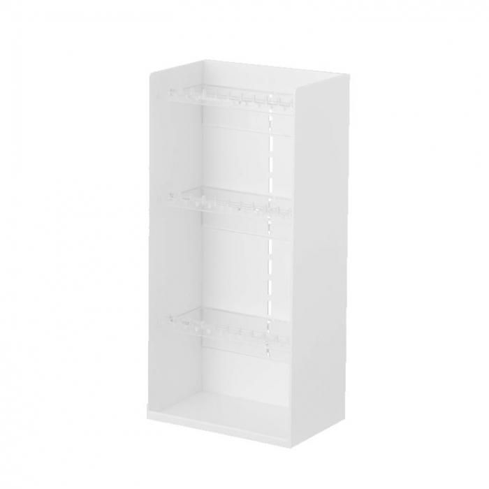 トレーは3枚付属しており、差し込むだけで簡単に取り付けられます。収納するものに合わせて高さを1.5cmごとに調節できます。