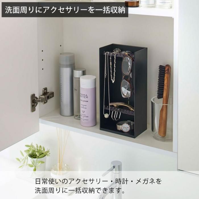 日常使いのアクセサリーや時計、眼鏡を洗面台まわりにまとめて収納できます。