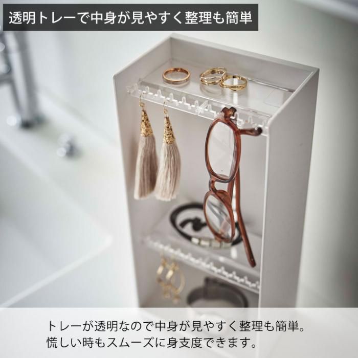 トレーが透明のため、中身が見やすく整理も簡単です。忙しい時もスムーズに身支度できます。