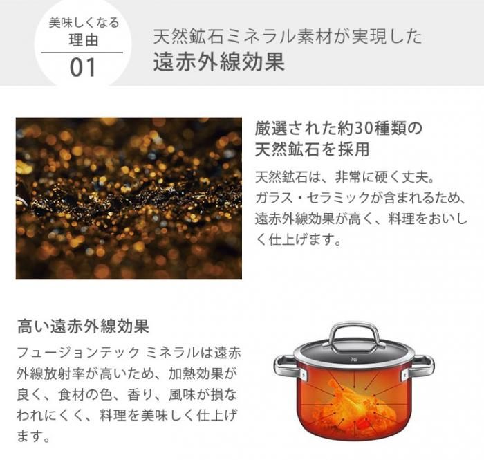 ミネラル素材が発揮する遠赤外線効果で、食材にじっくりと熱が入り、味がよく染み込みます。