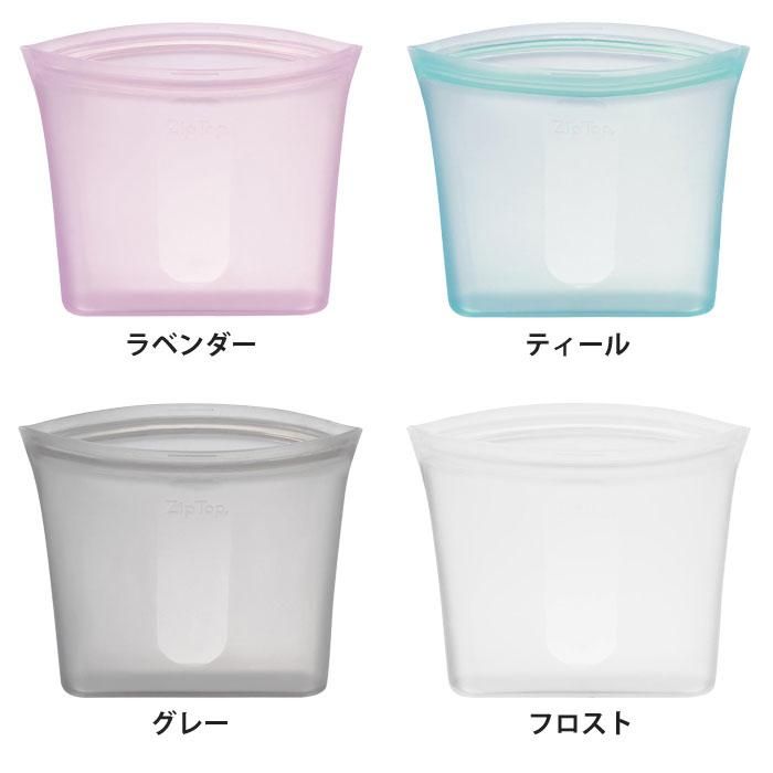 ジップトップはカップ、ディッシュ、バッグの3種類。ラベンダー、ティール、グレー、フロストの4カラー。使用用途に合わせてサイズや形状をお選びいただけます。