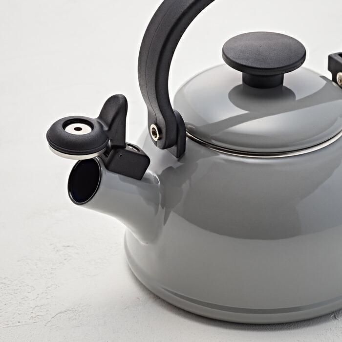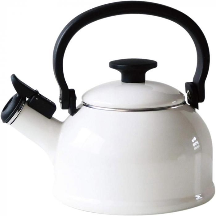 日々の生活から発想した、扱い易いシンプルなフォルムのほうろう製笛吹きケトル。お湯が沸いたら笛で知らせてくれて便利です。
