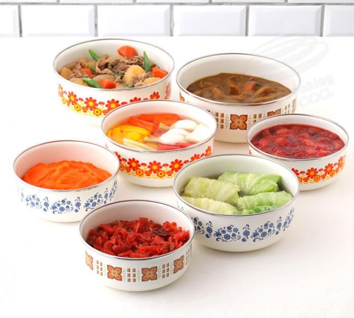 食材の保存やボウルとして料理の下ごしらえにも使える丸型ホーロー容器です。