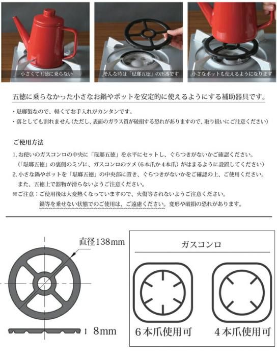 五徳に乗らなかった小さなお鍋やポットを安定的に使えるようにする補助器具です。
