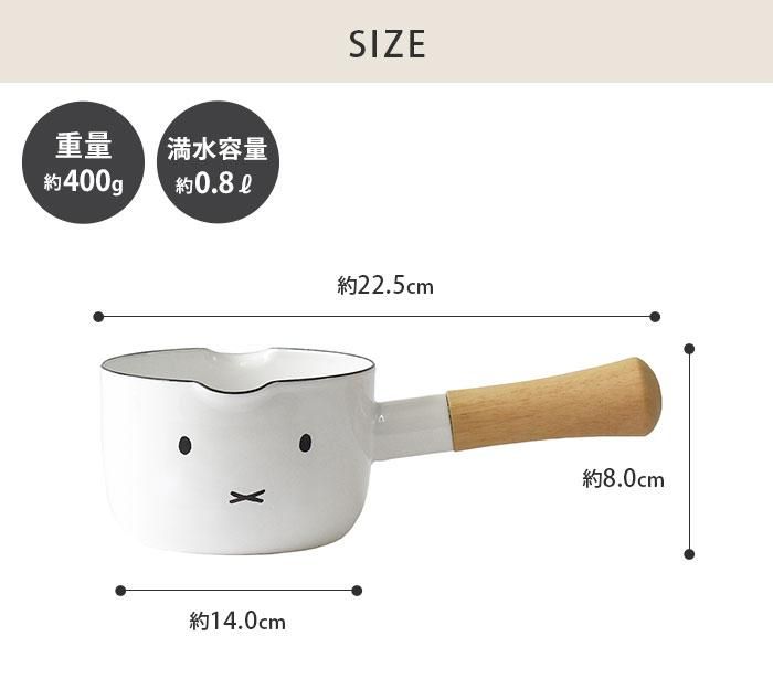 ミッフィーフェイス ミルクパン 12cm MFF-12M 富士ホーロー 送料無料 当日出荷 分類で探す キッチングッズ 鍋 片手鍋 ブランドで探す 富士ホーロー ミッフィーフェイス 価格帯(税込) 3,000円台の商品 キッチン用品 送料無料 ラッピング承ります ミッフィーとボリスのかわいいおかおがデザインされた可愛いミルクパン 表面と裏面でそれぞれ違う表情が楽しめます 両側に注ぎ口があり便利ですmff-12m 3,300円(税込)0円 在庫入荷待ちミッフィー3,300円(税込)3,300円(税込)ボリス3,300円(税込)在庫なし3,300円(税込) 数量 カートに入れる 製品について性能詳細お買い物ガイドクロッカについてかわいいおかおがデザインされたミッフィーフェイスシリーズ ミッフィーのかわいいおかおがデザインされたミルクパンです。1〜2人分のドリンクの温めやスープ作りにちょうど良いサイズ。両側に注ぎ口があり、利き手を選ばず容器に移すことができます。付け合せの野菜などを茹でる時にも活躍します。 2つの表情が楽しめる 表面と裏面でそれぞれ違う表情が楽しめます。 調理器具や保存容器など豊富なラインアップのミッフィーフェイスシリーズ。シリーズで揃えたくなる可愛さです。 サイズW 25.5 × D 14.0 × H 8.0cm 満水容量0.8L 重量約400g 材質本体:ほうろう用鋼板、ハンドル:天然木 対応熱源ガスコンロ(直火)、シーズ、ハロゲン、エンクロ、ラジエント(底径が12cm以下の調理器具は、IH調理器によっては反応しないことがあるため、IH表記をしておりません。) 備考タイ工場製(富士ホーロー 自社工場)電子レンジ使用不可日本琺瑯工業会認定Sマーク取得 ホーローについて手作業で釉薬を掛けるため、ひとつひとつの表情には多少の個体差が生じます。ホーローの性質上、焼成時に黒点や色むらの様に見える部位が生じる場合がございます。鋼板の切り口となる部分は釉薬がかかりにくく、下地の黒いスジが多少見られますが黒い部分もホーロー加工が施されております。上記の様な場合でも不良ではなくご使用には問題ございませんので安心してお使い下さい。 製造元富士ホーロー -ふじほうろうふじほーろーRERATED ITEMS関連商品富士ホーロー ミルクパン 14cm 0.8L ホワイト/パープルアッシュ/スモークブルー C-A14M富士ホーロー ミルクパン 15cm C-15M富士ホーロー ミニソースパン 12cm 0.8L C-12S