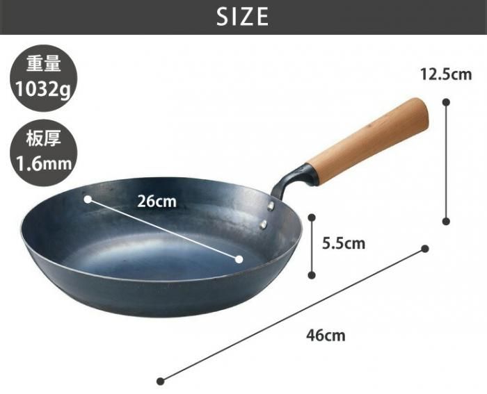 1枚の鉄の板を職人の目で確認しながら何千回も叩かれて出来上がるフライパンは、叩かれることによって鉄の分子が細かくなり、とても丈夫になります。