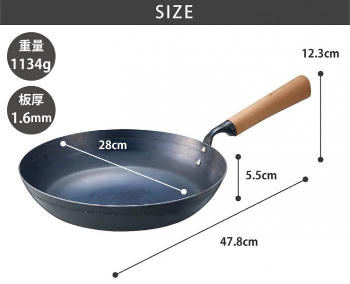 鉄はハンマーで打たれることで鋼となり、薄くても丈夫なフライパンとなります。また、表面に付いた細かな凹凸は油馴染みを良くします。