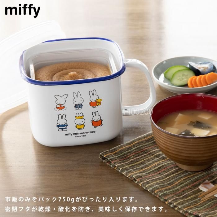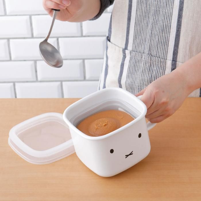 ミッフィーがデザインされた、かわいい味噌ポット。市販の味噌パック(750g)がケースごとぴったり入ります。