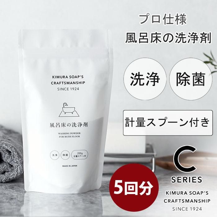 銭湯などで使われる業務用として長年販売してきた、プロ仕様を家庭向けに改良。濡らした床にまいて、軽くこするだけでヌメリや黒ずみを落とし、除菌効果まで。