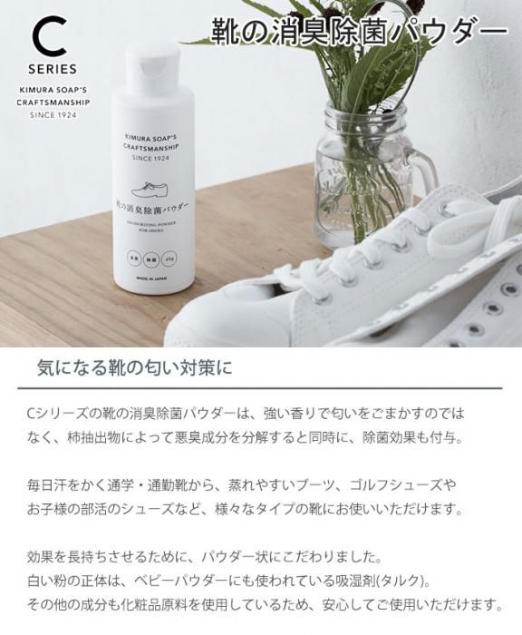 Cシリーズ 靴の消臭除菌パウダー 65g 木村石鹸 送料無料 当日出荷 分類で探す インテリアグッズ 掃除用品 洗剤 ブランドで探す 木村石鹸 特集ページ お掃除用品特集 その他お掃除用品 価格帯(税込) 1,000円台の商品 玄関用品 送料無料 ラッピング承ります 木村石鹸 C SERIES(シーシリーズ) 靴の消臭・除菌パウダー 柿抽出物によってを悪臭成分を分解すると同時に除菌効果も付与 パウダー状なので効果も長持ちしますcseries-002853 1,870円(税込)0円 靴の消臭剤在庫1,870円(税込)在庫なし取り寄せ1,870円(税込)在庫なし SOLD OUT 製品について性能詳細お買い物ガイドクロッカについてC SERIES 靴の消臭・除菌パウダー 商品説明気になる靴の匂い対策に! パウダータイプの靴の消臭除菌剤です。強い香りで匂いをごまかさず、柿抽出物によってを悪臭成分を分解すると同時に除菌効果も付与。パウダー状なので効果も長持ち。 白い粉の正体は、ベビーパウダーにも使われている吸湿剤(タルク)のため、安心してお使いいただけます。 毎日汗をかく通勤靴から、蒸れやすいブーツ、ゴルフシューズやお子様の部活のシューズ…様々なタイプの靴にお使いいただけます。 内容量65g 使用量の目安片足5〜10回振り 成分吸湿剤(タルク)、消臭剤、除菌剤 液性弱酸性 備考日本製 ブランド 製造元C SERIES 木村石鹸 -シーシリーズ きむらせっけん