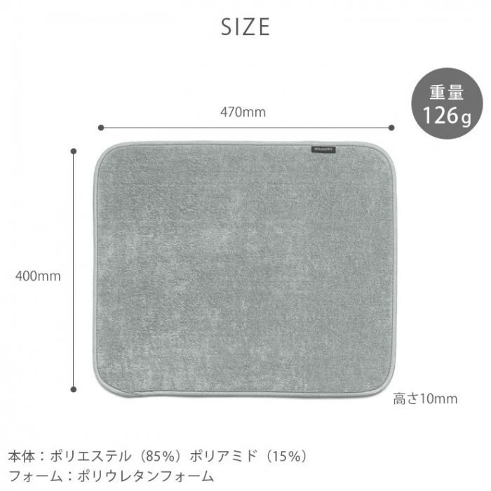 ブラバンシア マイクロファイバー ディッシュ ドライングマット 23030-1 11762-6 当日出荷 分類で探す キッチングッズ キッチン小物 シンクまわり その他シンクまわり ブランドで探す ブラバンシア 価格帯(税込) 1,000円台の商品 キッチン用品 送料無料 ラッピング承ります 洗ったお鍋 フライパン お皿 ガラス製品などを置いて水切り&乾燥できる水切りマット brabantia-117626-230301 1,100円(税込) 在庫入荷待ちミッドグレー1,100円(税込)在庫なし1,100円(税込)在庫なしダークグレー1,100円(税込)在庫なし1,100円(税込)在庫なし SOLD OUT 製品について性能詳細お買い物ガイドクロッカについて洗った食器・グラスを置いて水切り&乾燥 洗ったお鍋、フライパン、お皿、ガラス製品などを置いて水切り&乾燥できるドライングマット。マイクロファイバーは重量の約7倍の水を吸収し、マット上をドライに保ちます。表面は柔らかく、デリケート食器も傷つけにくい素材です。クッション性があり、お皿やマグカップ、壊れやすいものにも適しています。簡単に折りたたんで収納できます。汚れたら洗濯機で洗っていつでも清潔に保てます。 サイズ幅:40 x 奥行き:47 x 高さ:1cm 重量約126g 材質本体:ポリエステル(85%)ポリアミド(15%) / フォーム:ポリウレタンフォーム 生産国中国 備考洗濯可能 RERATED ITEMS関連商品