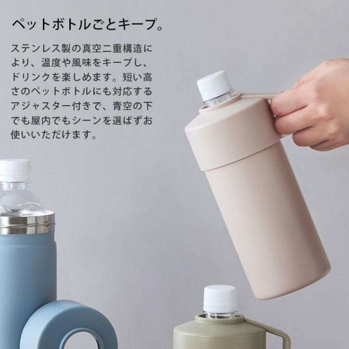 ステンレス製の真空二重構造により、温度や風味をキープしてドリンクを楽しめます。アジャスター付きで短いペットボトルにも対応。