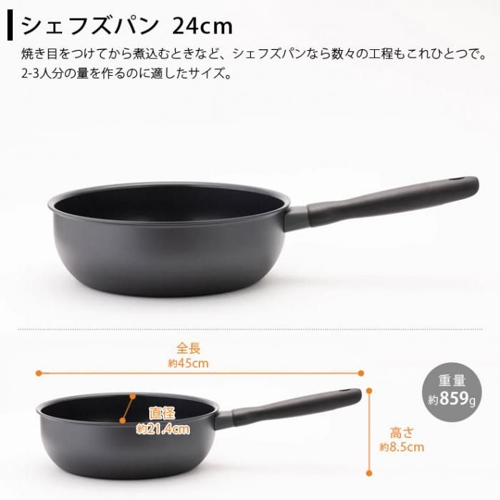 シェフズパン24cmは2-3人分の量を作るのに適したサイズです。