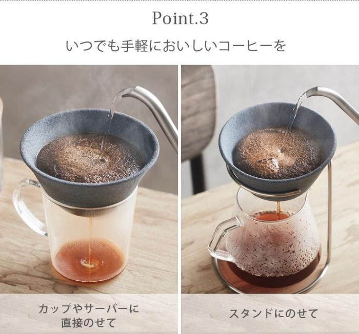 抽出目安はコーヒーカップ3〜5杯分。紙フィルターなどは不要で、コストもかからず半永久的に使える経済的にも環境にも優しいアイテムです。